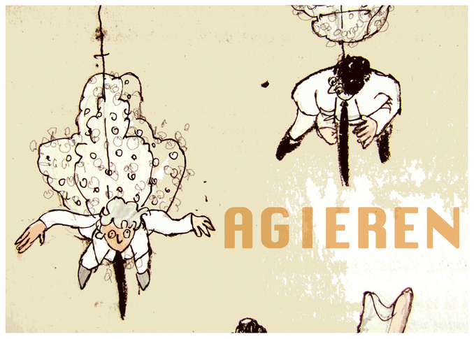 Postkarten die während der Assistenzeit am Theater Bonn entstanden sind. Die Schauspieler und der Theaterbetrieb werden dabei ins Visier genommen.